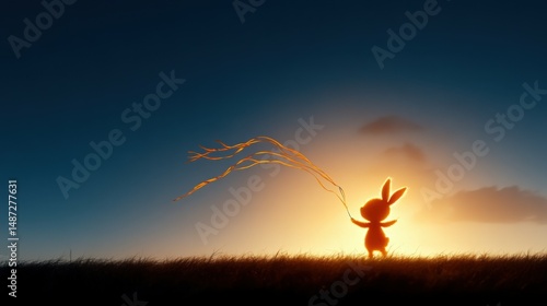 Fototapeta premium A bunny-shaped kite flying in a blue sky