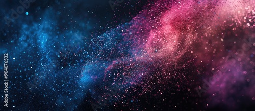 © HN Works, Naklejka premium A burst of colorful powder on a dark backdrop with a freeze frame effect showcasing a vibrant textured glitter explosion in a copy space image