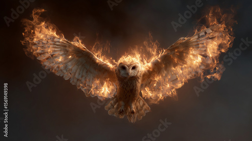 © Kristina, Obraz premium A burst of fire taking the form of an owl mid-flight