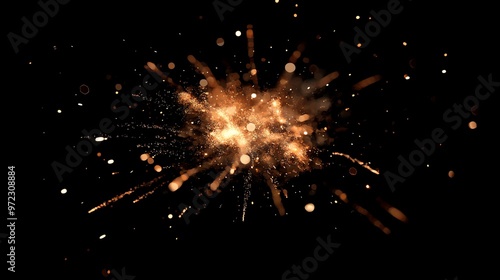 © BozStock, Fototapeta premium A burst of golden sparks against a black background.