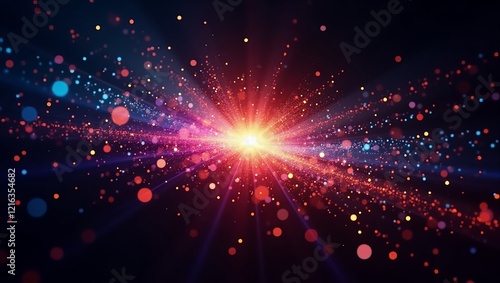 Fototapeta premium A burst of light and color explodes from the center of the frame, creating a...