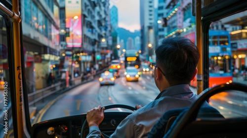 © Sasint, Obraz premium A bus driver navigating through the bustling city traffic