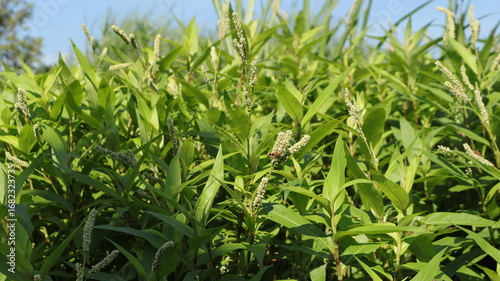 © bhram mase, Obraz premium A bushy, lush plant with white flowers in long panicles