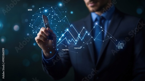© somneuk, Fototapeta premium A business professional analyzes data insights using a digital interface, showcasing a graph of fluctuating market trends.