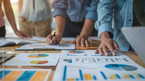 Fototapeta premium A business team of colleagues meets to plan, strategize, analyze, and discuss new financial graph data in the office.