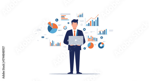 © msunny93, Fototapeta premium A businessman leaping between two rectangular blocks with a briefcase