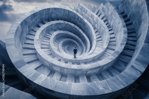 © Thammarong, Fototapeta premium A businessman trapped inside a massive downward spiral chart