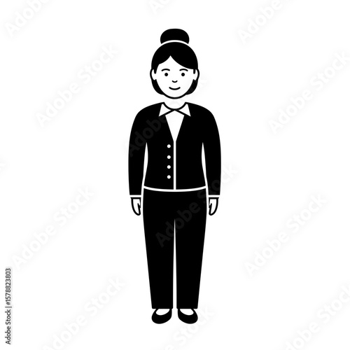 © Tumpa, Naklejka premium A businesswoman in a suit stands isolated on white background