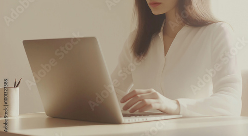 © Kritchanok, Naklejka premium a businesswoman working with laptop