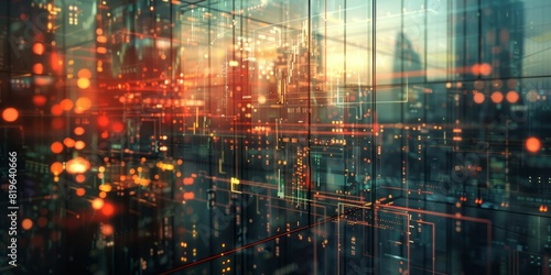 © VAshowcase, Fototapeta premium A bustling city illuminated by bright lights and towering buildings at night