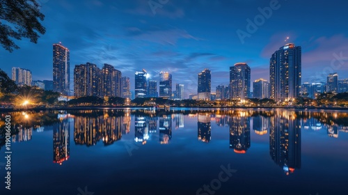 © arthit, Obraz premium A bustling city skyline illuminated by a spectacular Chinese New Year fireworks show, reflecting on nearby water.