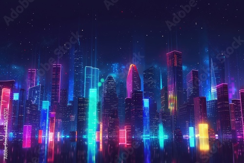 Obraz premium A bustling city skyline with towering skyscrapers and busy streets