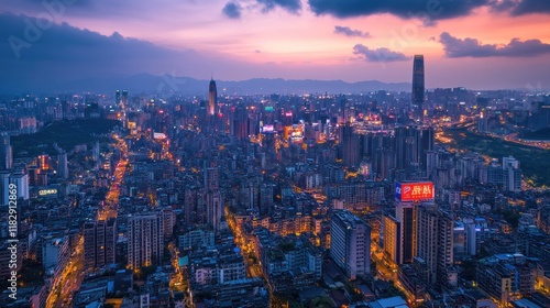 © isrofiyah, Obraz premium A bustling cityscape illuminated by vibrant billboards and streetlights at night