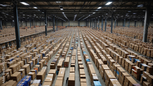 © 4K_Heaven, Obraz premium A busy warehouse during peak hours, with workers rapidly picking and packing orders, and carts moving swiftly between aisles, Generative AI