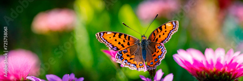 Fototapeta premium a butterfly collects pollen on flowers. Selective focus.