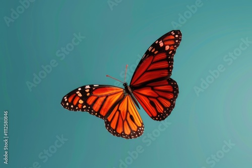 © Ева Поликарпова, Fototapeta premium A butterfly flying high in the blue sky