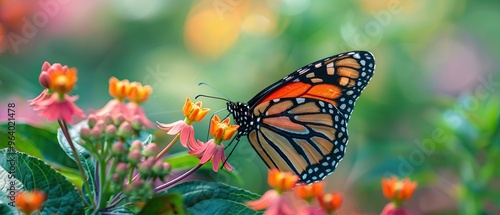 Fototapeta premium A butterfly is eating a flower