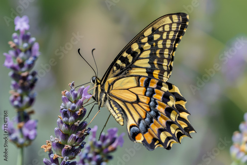 © Formoney, Fototapeta premium A butterfly is perched on a purple flower