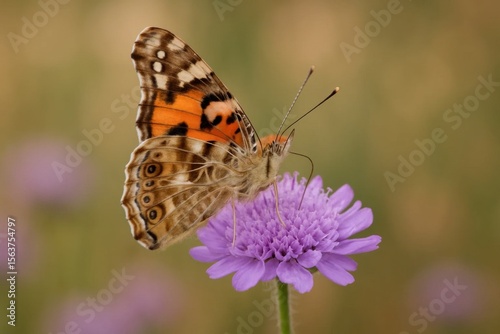 © Janis, Obraz premium A butterfly sitting on a purple flower in a field