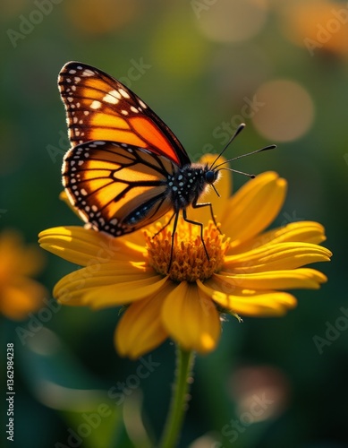 Fototapeta premium A butterfly sitting on top of a yellow flower