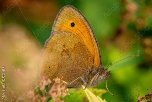 © Adam, Obraz premium a butterfly sitting on vegetation on a beautiful spring day. photo macro