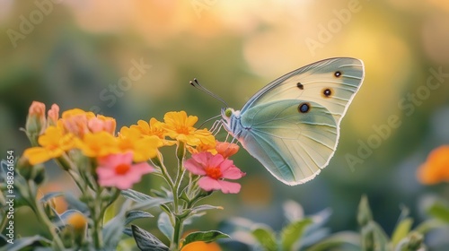 Naklejka premium A butterfly softly landing on a vibrant flower