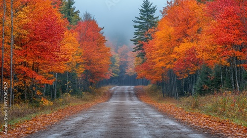 Obraz premium A calm autumn path through the woods, the trees ablaze with fall colors, with...
