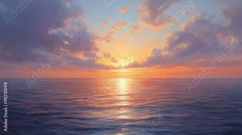 © addymawy, Fototapeta premium A Calm Ocean at Sunset with Dramatic Sky