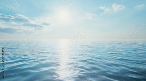 © Oulailux, Fototapeta premium A calm ocean with a bright sun shining on the water