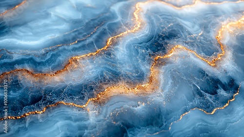Fototapeta premium A calm pastel blue marble surface with subtle gold veins flowing smoothly...