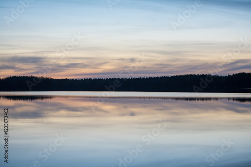 Fototapeta premium A calm, tranquil lake on a spring night in the forests of Finland