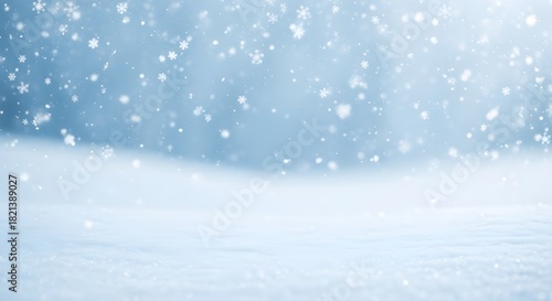 © hatma, Naklejka premium A calm winter background with soft snow and falling snowflakes, creating a cool and peaceful atmosphere. Perfect for holiday designs, greeting cards, banners, and other winter-themed visuals.