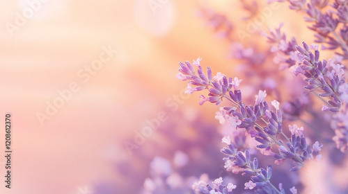 Naklejka premium A calming gradient of soft peach transitioning into lavender with a blurred...