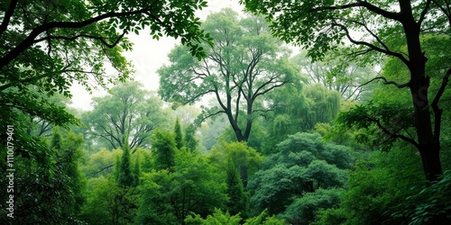 Obraz premium A canopy of verdant leaves and branches intertwine, creating a picturesque...