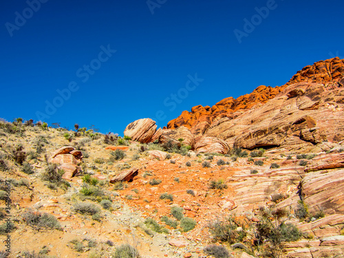 © VKari, Fototapeta premium A canyon with a mountain in the background. Large brown slopes.