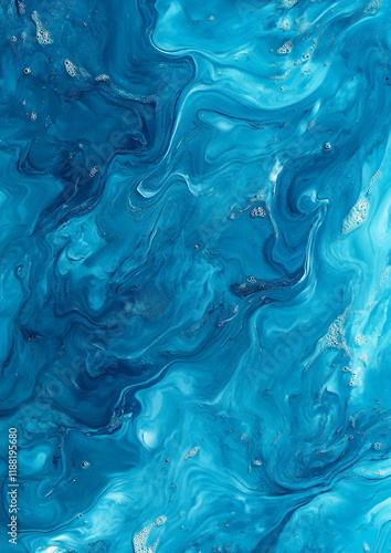 © Fazla, Naklejka premium A Captivating Abstract Background Showcasing the Pure Turquoise Texture of Ocean Waves and Gentle Foam, Perfect for Creating Stunning and Serene Vertical Wallpapers. Generative Ai