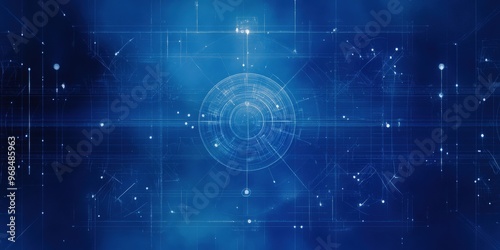 © CoreVisuals, Obraz premium A captivating abstract blue background featuring intricate geometric patterns and glowing stars, perfect for technology and space themes.