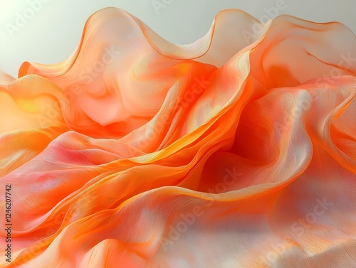 © AIGC JOE, Obraz premium A captivating abstract composition featuring flowing orange and peach fabric, creating a soft and dreamy visual effect with gentle curves and soft gradients.