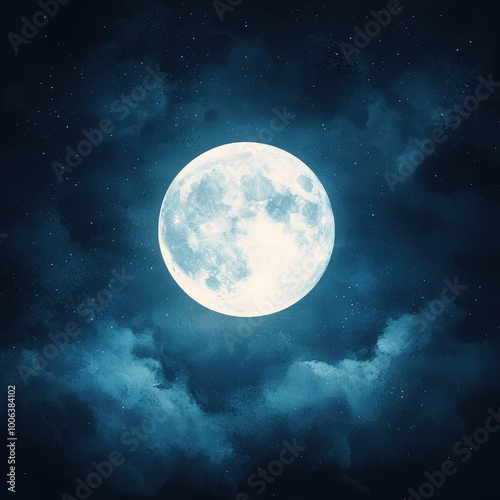Fototapeta premium A captivating and serene night sky featuring a bright full moon surrounded by...