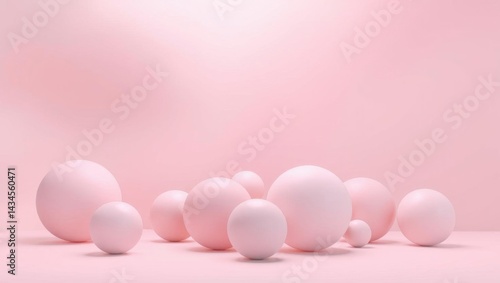 © Alex, Fototapeta premium A captivating arrangement of pastel pink spheres varying in size, creating a serene and modern aesthetic perfect for contemporary design and decor.