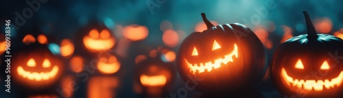 Fototapeta premium A captivating array of glowing jack-o'-lanterns, illuminating the dark with...