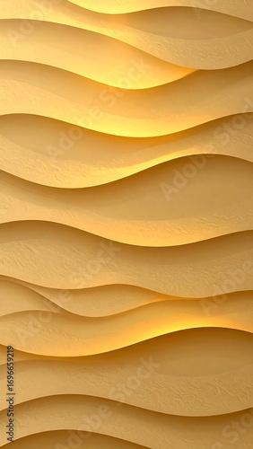 © aguero, Obraz premium A captivating backdrop of undulating golden waves, showcasing a dynamic interplay of light and shadow.