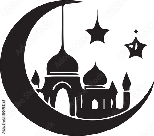 Obraz premium A captivating black silhouette featuring a mosque nestled within a crescent...
