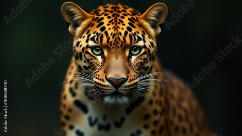 Obraz premium A captivating close-up of a leopard, emphasizing its unique coat and intense...