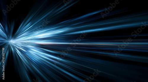 © Thiago, Obraz premium A captivating display of luminous beams of light streaking across a dark backdrop, creating an abstract and dynamic visual