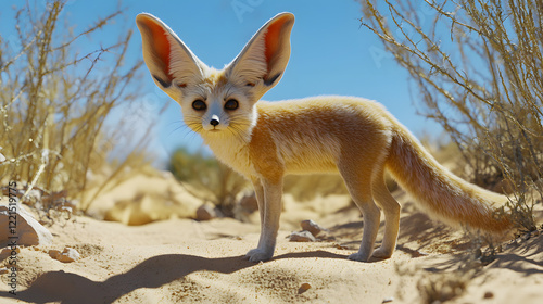Fototapeta premium A Captivating Fennec Fox with Large Ears in a Picturesque Desert Environment