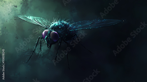 © Thiago, Fototapeta premium A captivating illustration of a luminous fly in a dark setting. phantasmagoric. illustration. Luminous. Illustration