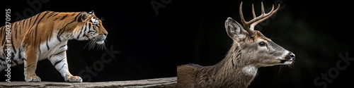 Naklejka premium A captivating image of a tiger and a deer, showcasing their unique features and expressions.