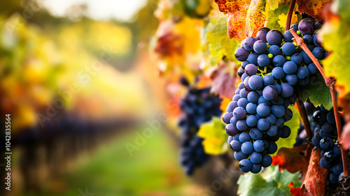 Obraz premium A captivating image of a vineyard in autumn, with grapes ready for harvest...