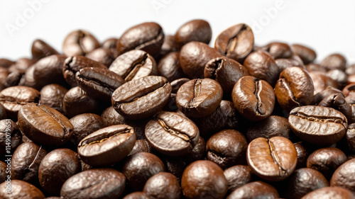 © Donny, Naklejka premium A captivating image of meticulously stacked coffee beans, forming a mesmerizing pyramid or other intricate patterns. The rich, dark brown hues of the beans create a visually stunning display, highligh